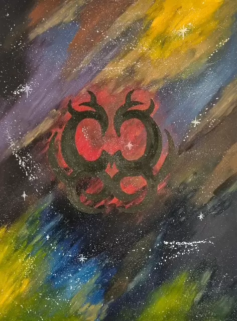 A coruja volta a protagonizar a arte de Ricardo do Rosário. Em “Simbologia Cósmica”, ele evoca o estudo de uma civilização pré-humana, dizimada por guerras. “Esta pintura a óleo representa esta simbologia, onde não há nenhum resquício de pré-humanidade, onde outros seres inteligentes viveram na Terra”, explica.