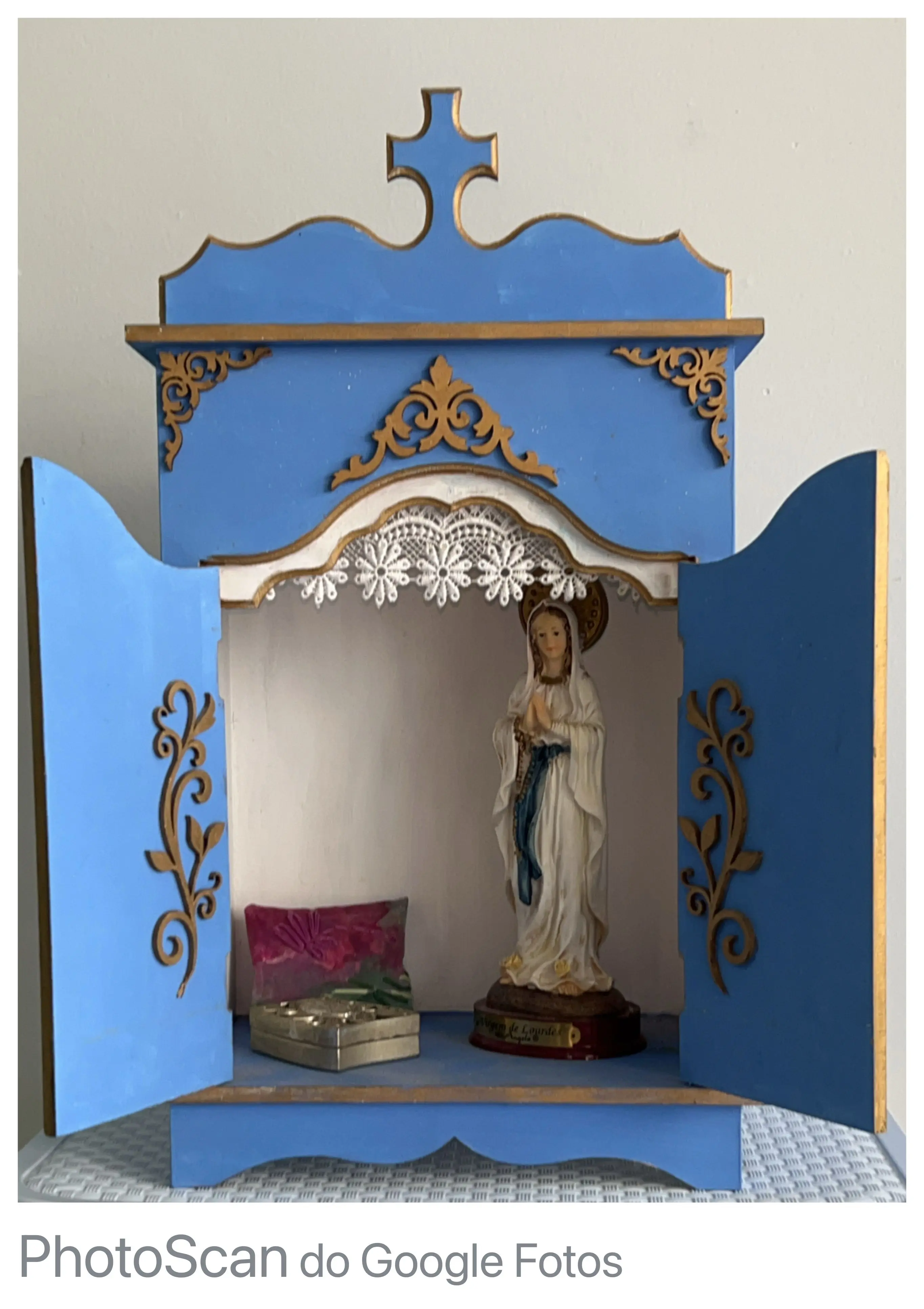 “Nas xícaras, guardo o afeto que continua vivo; nos bichinhos, os mundos que encontrei e que me encontraram; nos copinhos, as celebrações; e nos presépios, a origem que ainda respira. O que guardo não é objeto, é rastro, presença, permanência, onde a memória não dorme, mas habita.”