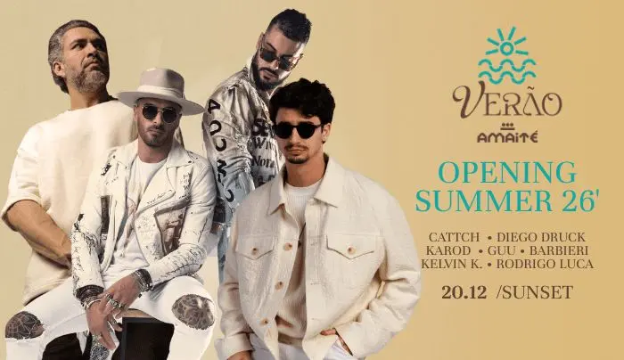 O verão renasce no Amaité, na Praia dos Amores, em Balneário Camboriú. O local, com cenário paradisíaco e a vibe praiana, reabre após duas semanas com uma super programação, celebrando a chegada da nova estação.