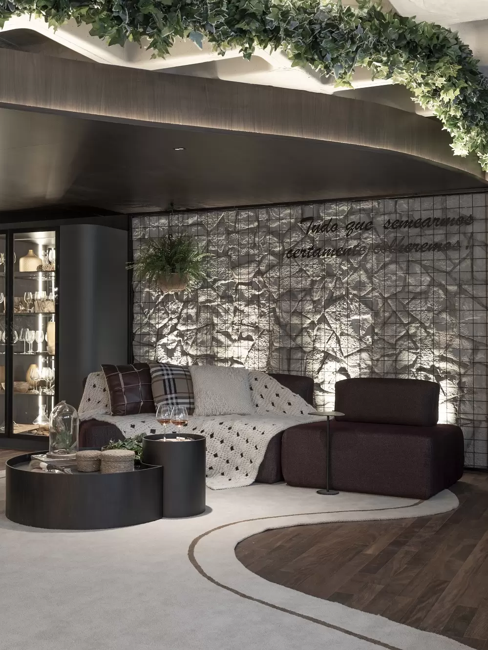 Com o TERROIR ela propõe um ambiente aconchegante, acolhedor, invernal e com o bom sabor do vinho! “ Assim como no vinho, na nossa vida também se aplica a lei da semeadura, onde é preciso lembrarmos que para colher bem, há que respeitar duas condições básicas: o plantar e o cultivar”, explica a arquiteta.