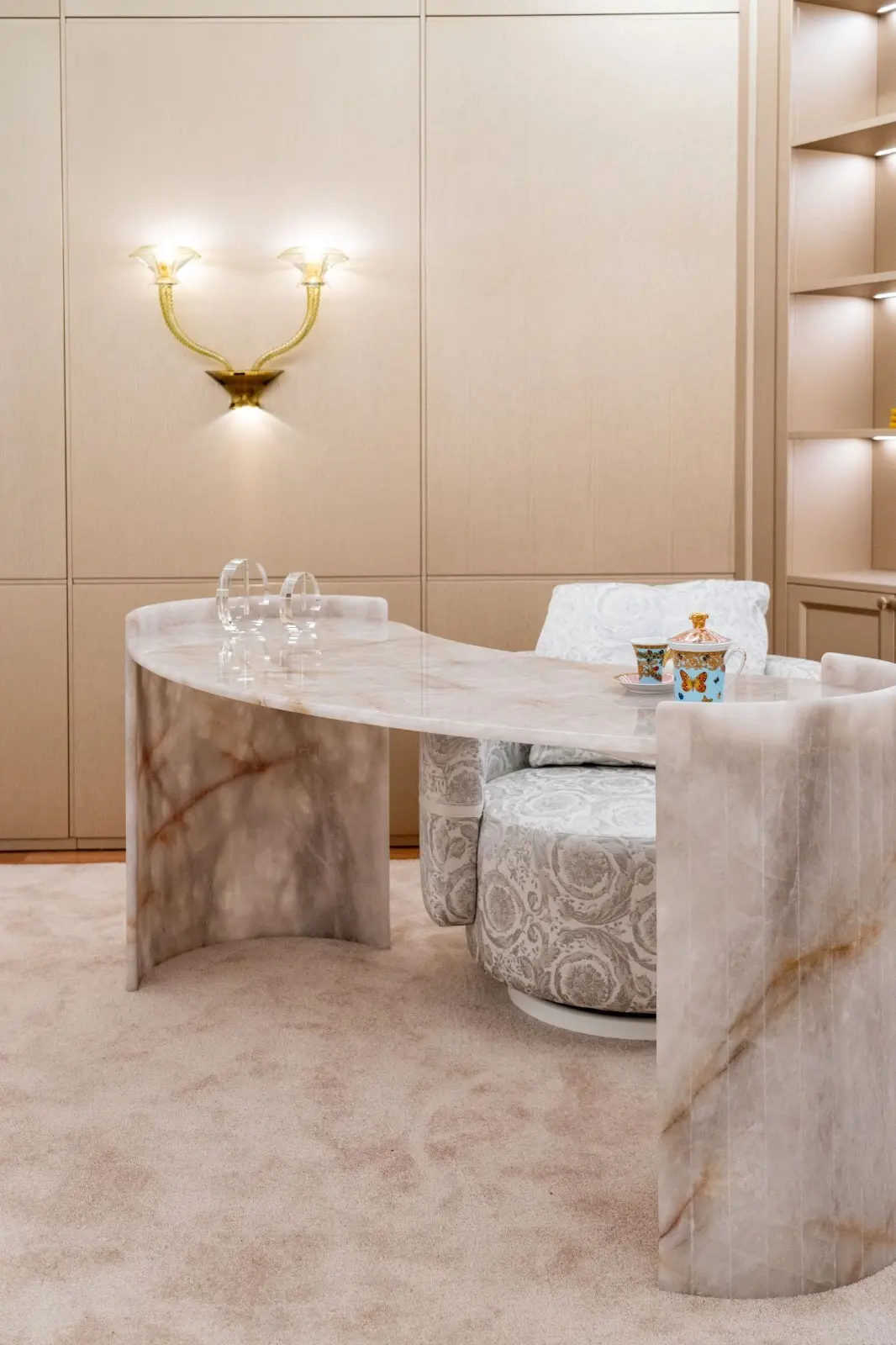 O paisagismo leva a assinatura de Benedito Abbud e a curadoria de interiores é coordenada pelo Centro Criativo da Dall, trazendo marcas internacionais como Versace Home, Versace Ceramics, Rubelli, Gessi, Olivari, Barovier & Toso e Technogym.