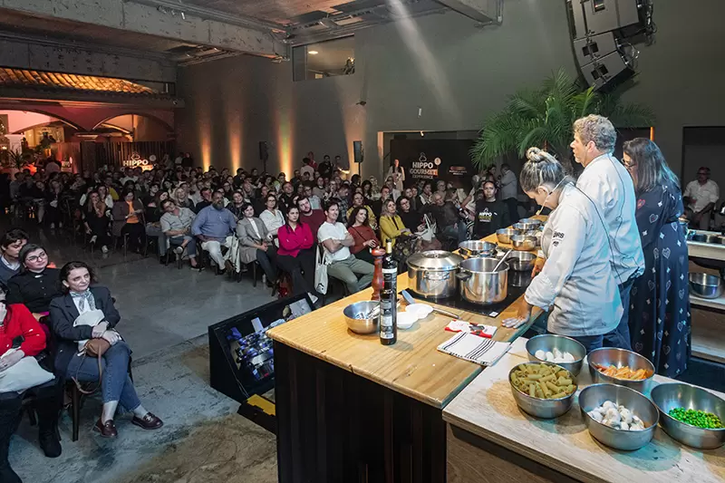 Sempre surpreendendo e encantando o público, o chef francês Claude Troisgros encerrou o Hippo Gourmet Experience, no último sábado (3/8), ensinando um prato clássico francês, mas com uma pegada bem brasileira: um Boeuf Bourguignon preparado com charque, ingrediente tradicional dos carreteiros do Sul. Sua aula show, ministrada na Alameda Casa Rosa, foi uma das atrações mais concorridas da feira gastronômica que comemorou os 27 anos da Rede Hippo na Grande Florianópolis.