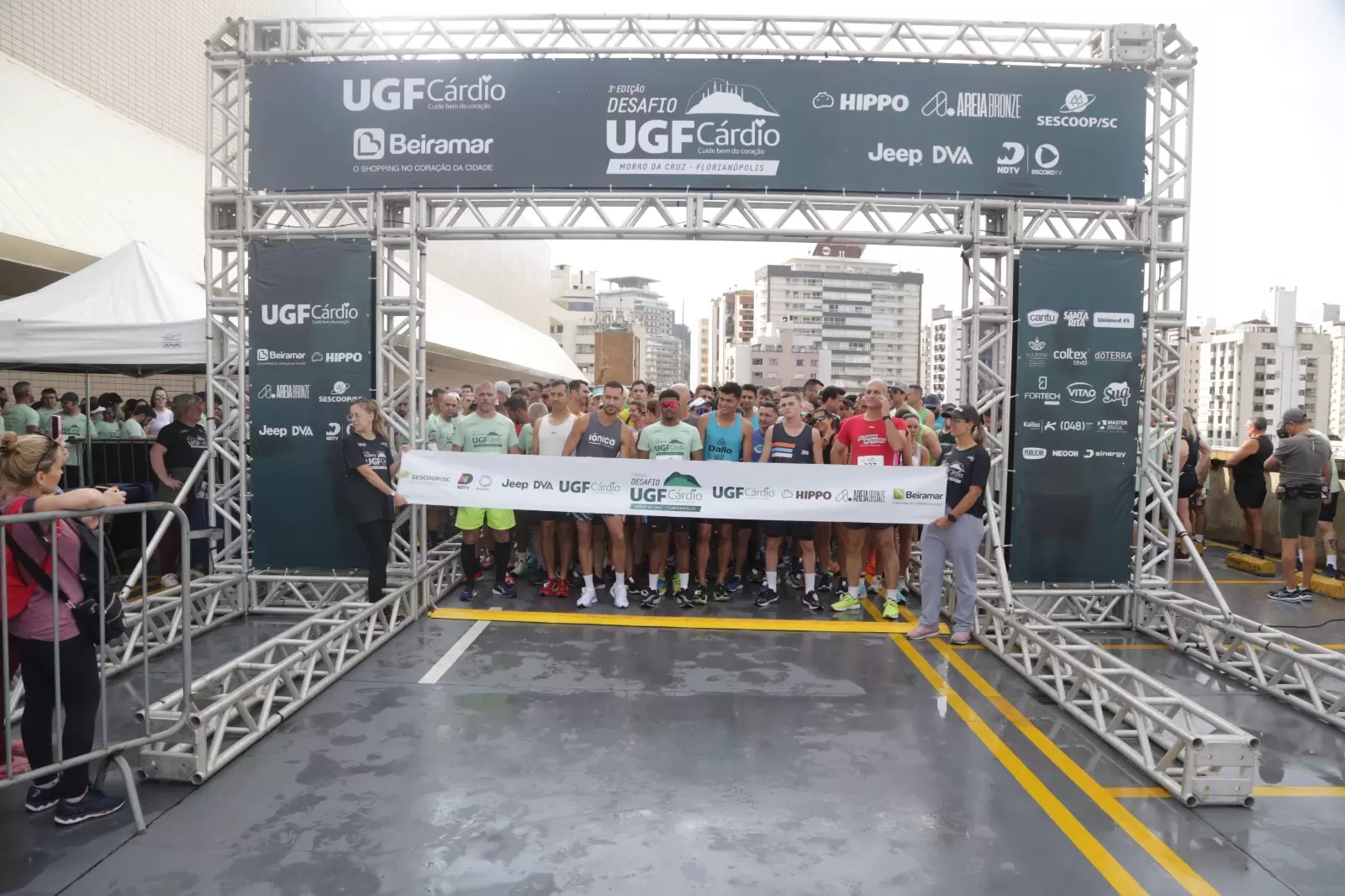 Adiado em função da chuva que atingiu o Estado em outubro, o 3º Desafio UGF Cárdio Morro da Cruz teve mul corredores inscritos, largada no Beiramar Shopping e chegada na sede do Grupo ND neste feriado de 15 de Novembro pela manhã. Pela primeira vez, o evento teve maioria feminina, com 54% dos inscritos. Com o sol, que contrariou a previsão do tempo para ontem, os atletas puderam curtir uma vista de quase 360º da Capital e ainda aproveitar o show com a banda Baile do Vince, chope e brindes dos patrocinadores. “Estamos felizes com mais este evento entregue. O tempo contribuiu e os corredores puderam aproveitar toda a estrutura. Ano que vem tem mais”, ressalta o CEO da Ponto Eventos, organizadora da prova, Eduardo Marcondes.