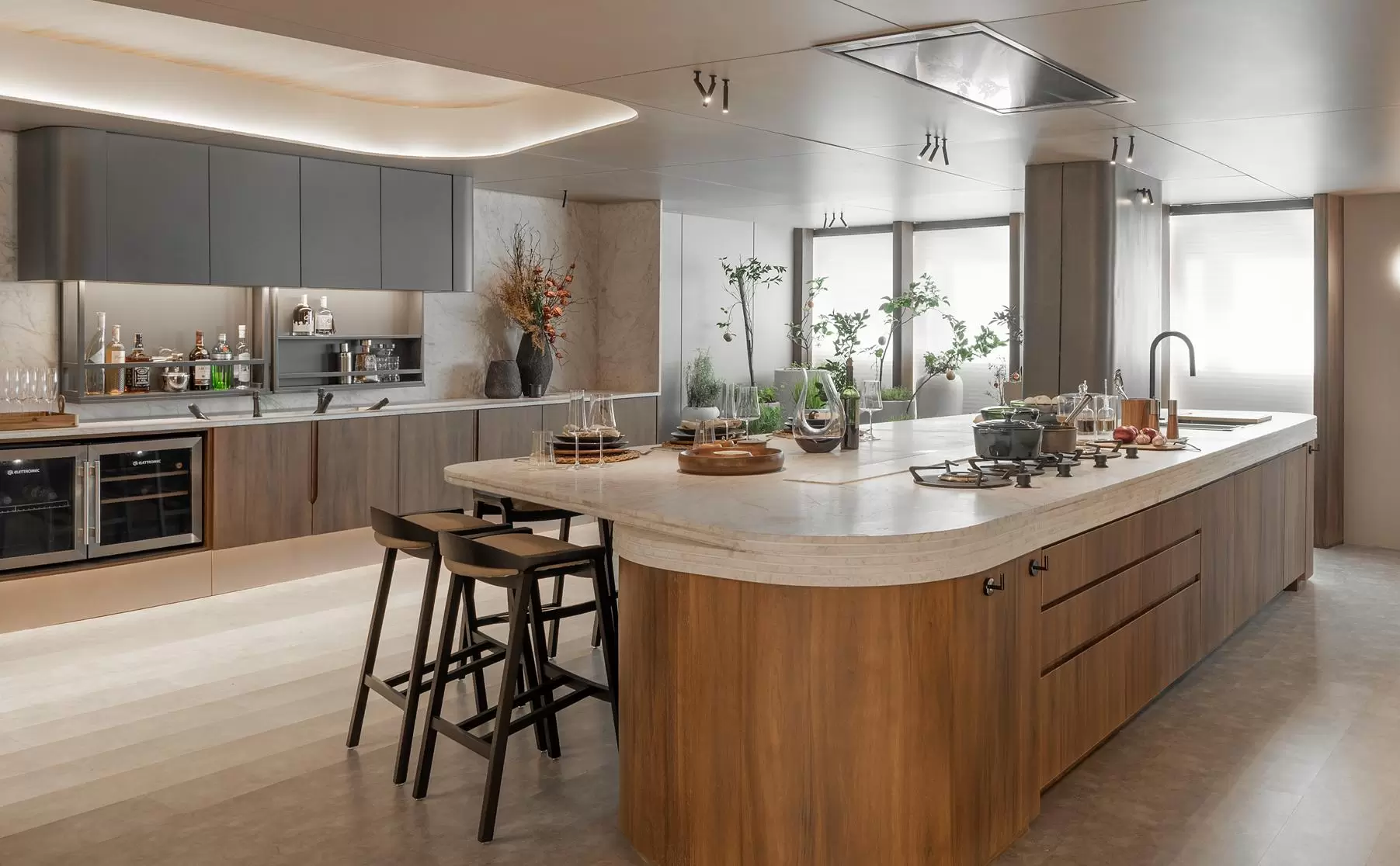 “Minha ideia foi criar uma cozinha grandiosa, sensível e cheia de significado. Ao mesmo tempo, imponente, contemporânea, tecnológica e sofisticada, um espaço que carrega potência e poesia na mesma medida”, pontuou.