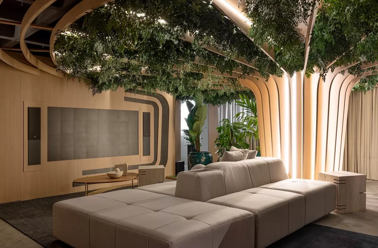 O ambiente de 97m2 exala elegância e aconchego. Materiais nobres, iluminação acolhedora e vegetação exuberante compõem o espaço que desperta sensações e inspira novos começos. Um refúgio que une conforto, natureza, tecnologia, inovação e sofisticação para uma imersão no universo Volvo.