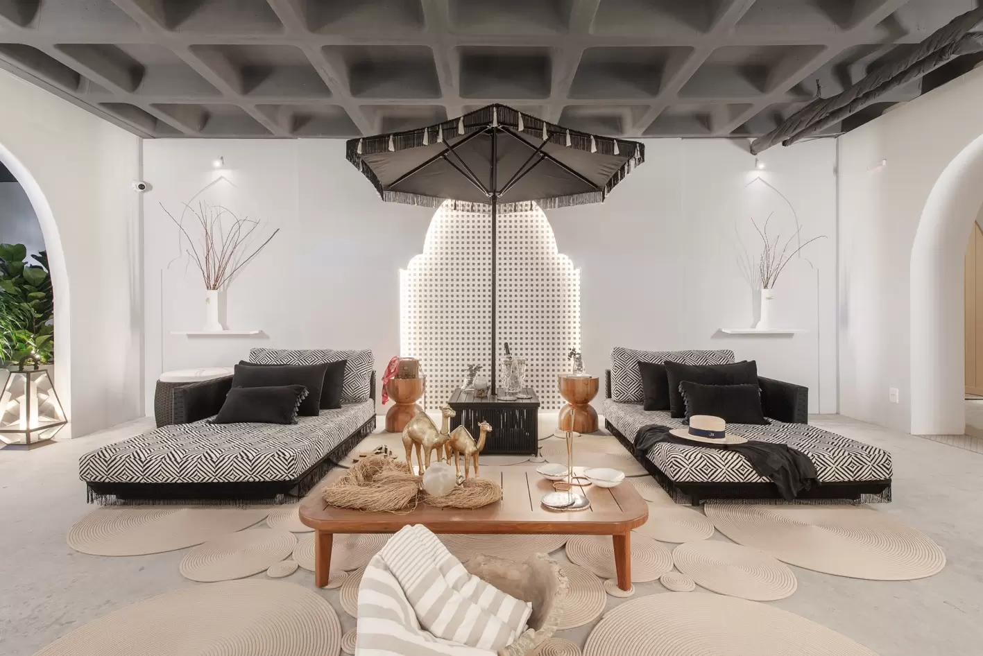 O espaço de descanso, assinado pelas Designers de Itapema, Taís Amaral, estreante na mostra, e Raquel Araújo, que participa pela segunda vez, foi batizado de Praça Encontros, onde em 105 m² mostram seu talento na edificação de uma casa pátio, onde mais do que arquitetura, trazem conforto e convivência ao expectador.