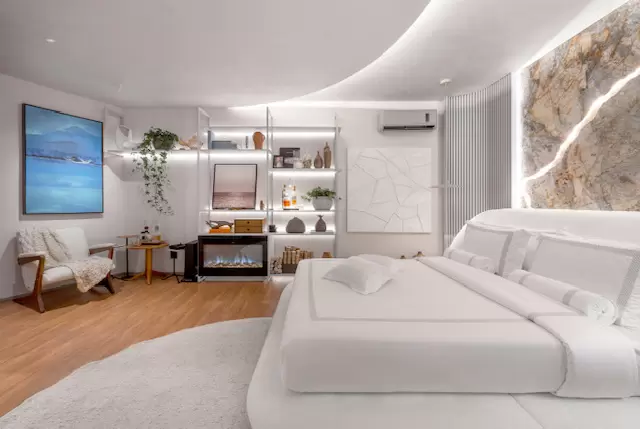 Atualmente, Jeane está com um ambiente em exposição na CASACOR/SC, onde sutilmente permanecem as cores do seu time unindo aos elementos naturais, como a madeira e a pedra natural em tons terrosos. Logo na entrada está a tela em tons de azuis feita pelo artista plástico e designer Julian Gallasch especialmente para a suíte “Mar e Montanha”, que pode ser conferida na mostra até o dia 29 de outubro.
