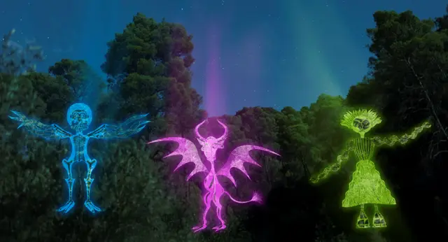 Universo Fantástico – Inspirados nas lendas da ilha e nos seres mágicos de artistas como Franklin Cascaes, seres encantados que guardam a natureza ganham vida conforme os movimentos dos visitantes.