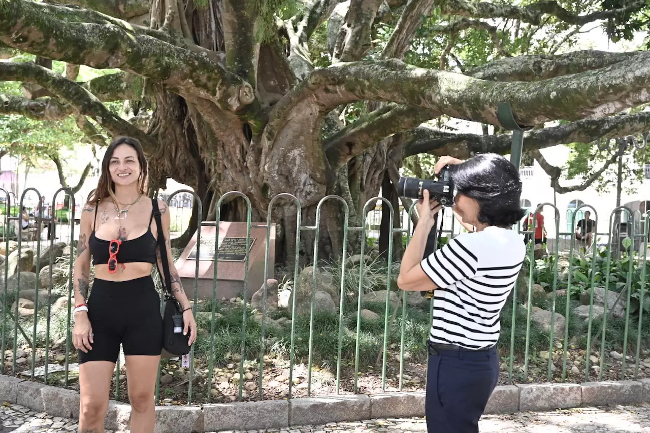 A icônica Figueira da Praça XV de Novembro, que fica no Centro de Florianópolis, foi o local escolhido para a realização do Projeto Foto Retrato da fotógrafa Joyce Mussi. Durante a sexta-feira, dia 15 de março, a profissional fez o retrato de 60 mulheres que passaram pelo local. Todas levaram os registros impressos para casa.