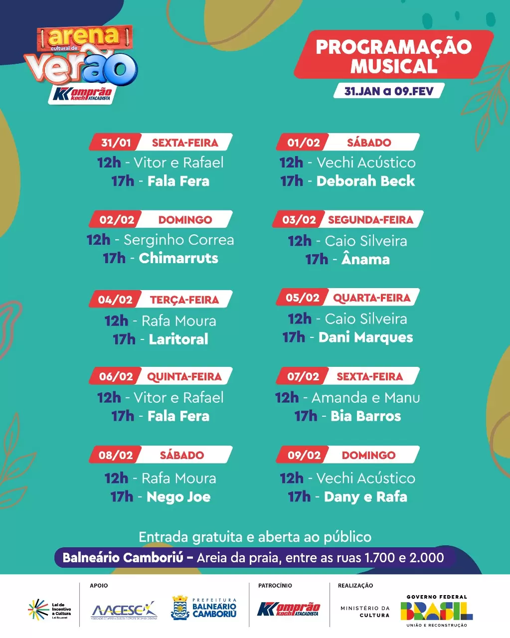 A Arena de Verão do Komprão é uma iniciativa que visa proporcionar atividades esportivas e culturais gratuitas para moradores locais e turistas, durante o verão no litoral catarinense. O evento contará com shows musicais, incluindo apresentações de artistas nacionais como Chimarruts e Nego Joe, além de espaços interativos com marcas parceiras do Grupo Koch, oferecendo experiências diversificadas com brincadeiras, degustações e distribuição de brindes.