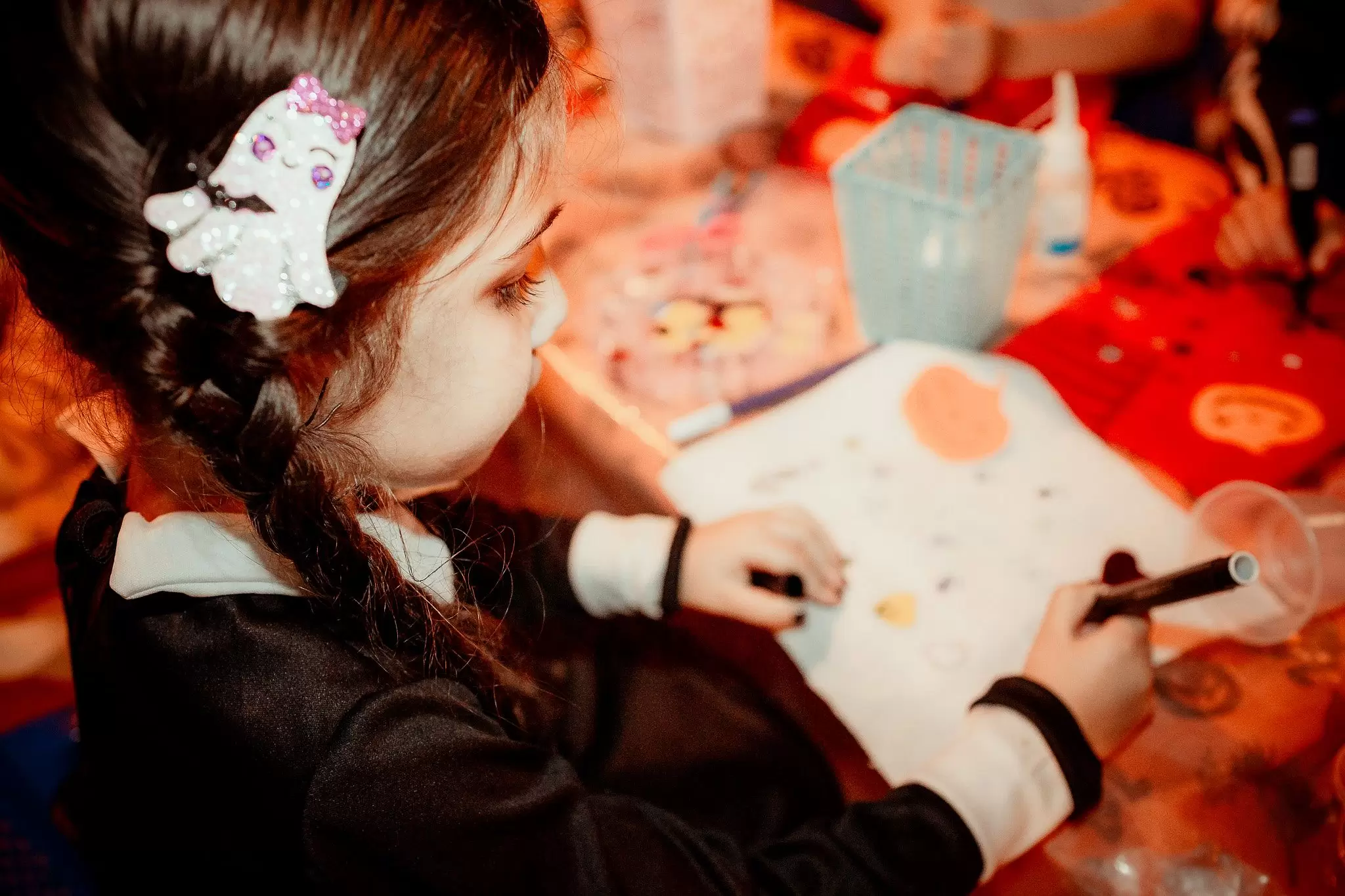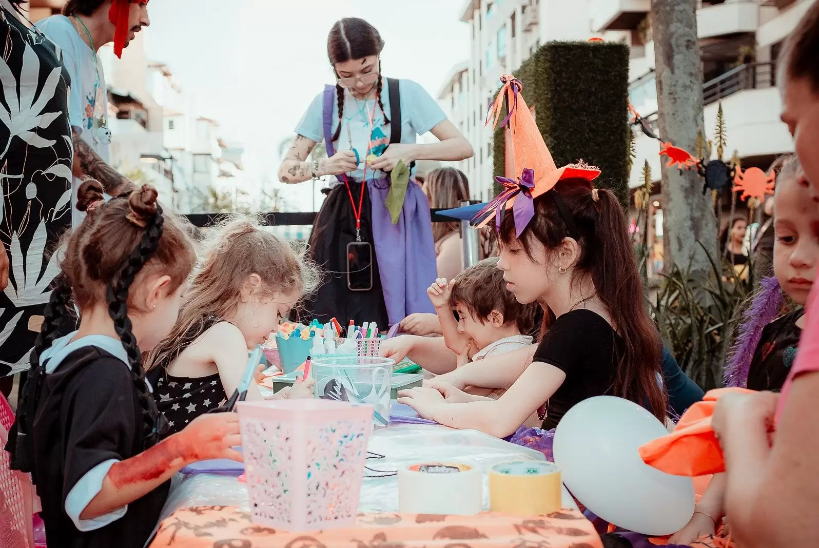 Das 15h às 18h, a animação começa com o camarim de penteados e maquiagens temáticos, onde os pequenos poderão se transformar em bruxas, vampiros, zumbis, monstrinhos e outras criaturas assustadoras. Para completar o visual, haverá ainda uma oficina de sacolinhas horripilantes, onde os pequenos poderão criar seus próprios acessórios personalizados para guardar os doces e travessuras da noite.