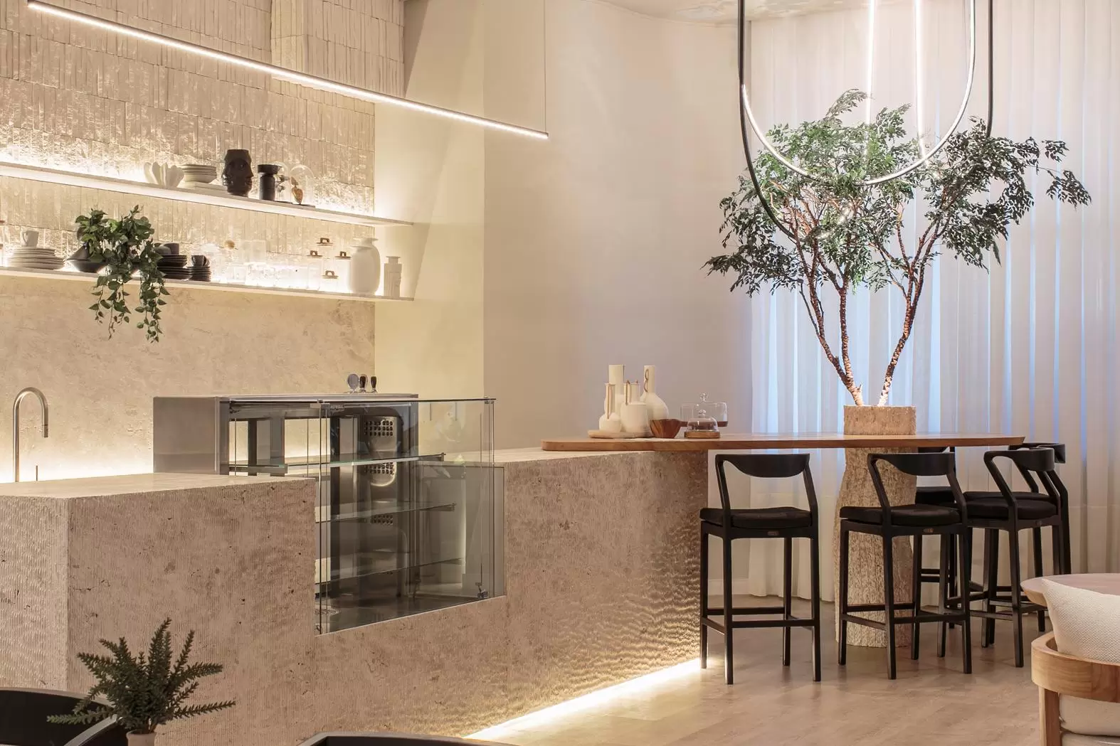 Apostando em acabamentos naturais, como madeira, pedra rústica, tecidos com texturas aconchegantes e plantas naturais, o Bistrô CASACOR propõe ser um refúgio dentro da mostra, um ambiente onde tempo e espaço se moldam ao prazer do encontro. O Bistrô é um convite a desacelerar.