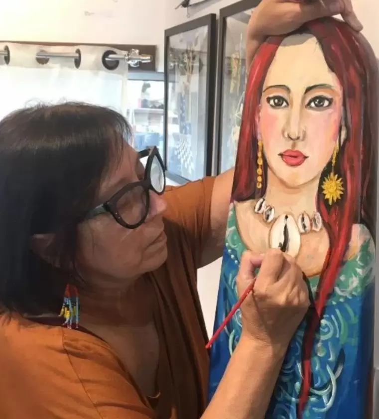 Lilly expressa sua paixão pela vida em cores exuberantes e contrastes, produzindo imagens que transbordam alegria e bom humor. Suas criações também podem ser conferidas no seu atelier “Santo de Casa”, que fica no bairro Santo Antônio de Lisboa.