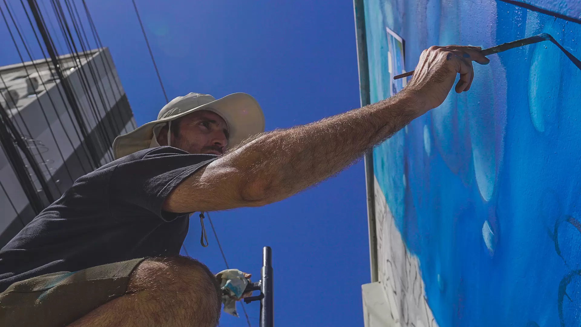 Os muros do quase centenário Lira Tênis Clube, bem no Centro da Capital, passam a fazer parte da galeria a céu aberto que tem colorido Florianópolis com grandes painéis que compõem o Street Art Tour 2024.