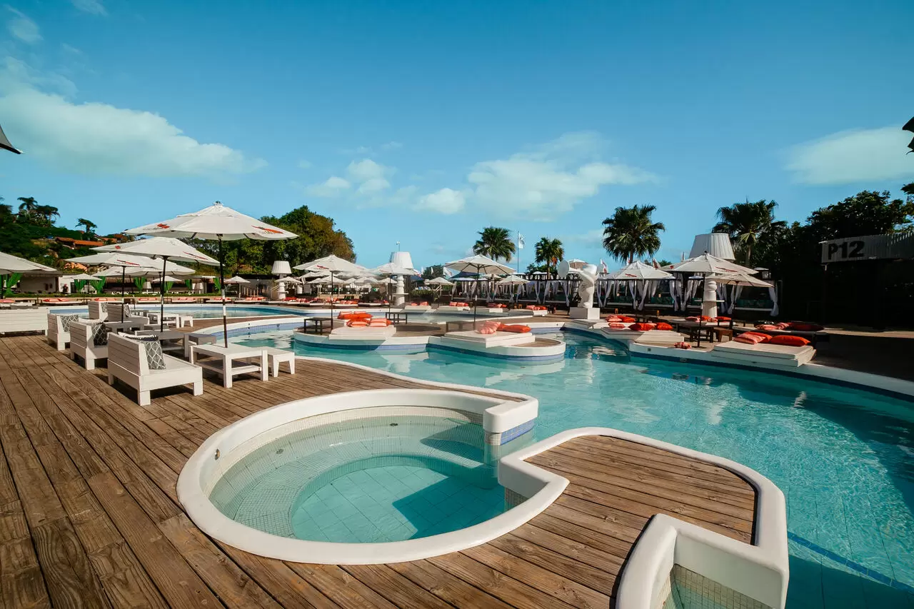 E, tem novidade na casa! O Pátio P12, é sucesso garantido para os dias de festa. O food hall moderno e aconchegante conta com opções descomplicadas e saborosas: hambúrguer, pastel, pizza, cachorro-quente, sorvete, drinks e chopperia Brahma. Toda estrutura de gastronomia, praia e piscina, e a comodidade dos espaços de bangalôs e camarotes para entregar a experiência completa do P12.