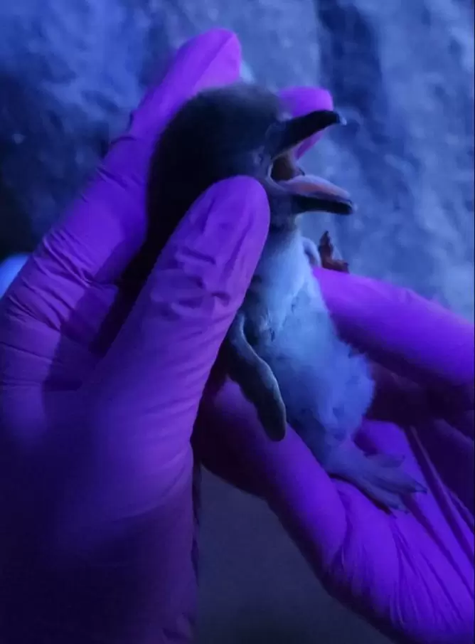 O Oceanic Aquarium apresenta o mais novo morador: o bebê pinguim! Ele tem poucos dias, mas já exibe muita fofura! O pequeno nasceu às 11:40h do dia 21 de janeiro pesando 59 gramas. Foram 38 dias de choca com os papais bem atenciosos. Eles se revezaram nos cuidados com os dois ovos, um foi colocado dia 06 e o outro no dia 14 de dezembro, mas o primeiro não completou o desenvolvimento embrionário: “Isso é bem comum entre a espécie, inclusive na vida selvagem, principalmente com papais de primeira viagem”, explica André Neto, biólogo e diretor técnico operacional do aquário.