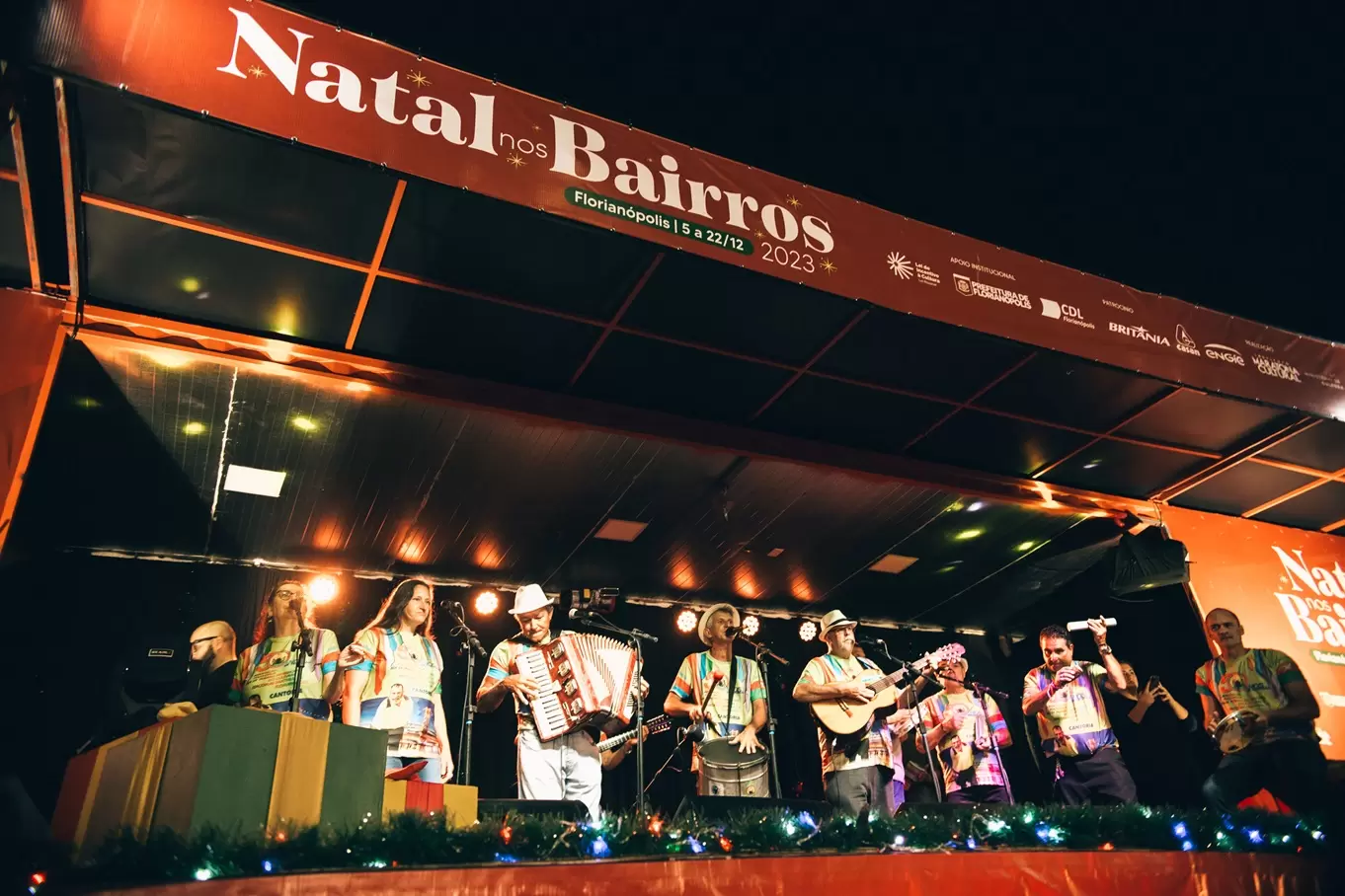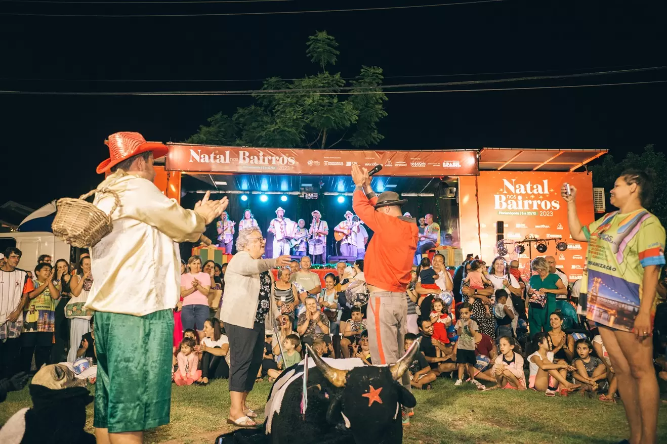 O Natal nos Bairros 2024 é uma realização do Instituto Maratona Cultural, Ministério da Cultura e Governo Federal. Patrocínio de Engie, Koerich, Casan e Quantum Engenharia, através da Lei Federal de Incentivo à Cultura. Apoio Institucional: Prefeitura Municipal de Florianópolis e CDL Florianópolis.