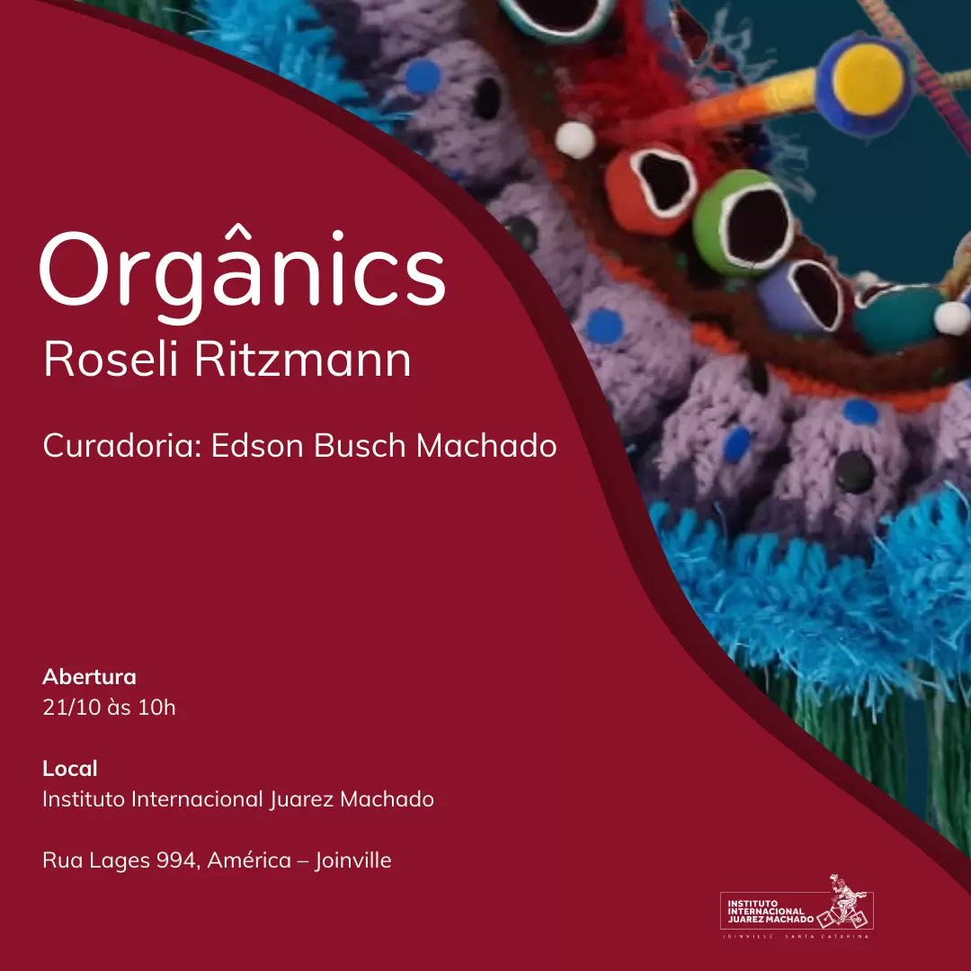 Na exposição de obras têxteis “Orgânics” a poética apresentada gira em torno de aspectos relacionados às sensações, estranhamento, observação e imaginação frente a um mundo paralelo relacionado a aparência e estrutura de diferentes habitantes do ecossistema. A adaptação das composições ao espaço físico é outra característica da série de obras que conta com a curadoria de Edson Busch Machado.