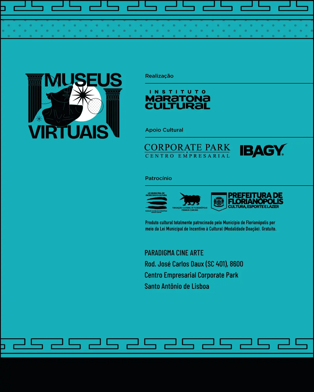 A atividade é gratuita e aberta ao público. Os ingressos são distribuídos a partir das 18h30, na bilheteria do Paradigma Cine Arte, por ordem de chegada. O projeto Museus Virtuais é uma realização do Instituto Maratona Cultural, com apoio cultural do Corporate Park Centro Empresarial e IBAGY, e patrocínio da Prefeitura de Florianópolis, por meio da Lei Municipal de Incentivo à Cultura.