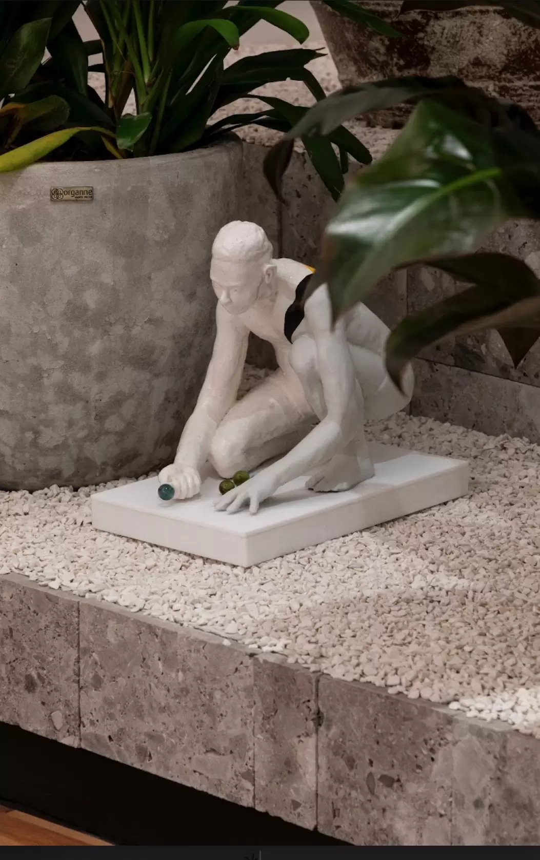 A planta do ambiente conta com cozinha gourmet e duas salas (de jantar e de TV). Um dos grandes destaques, na opinião da arquiteta, é o jardim de inverno, revestido com pedras da coleção Collina (Mosarte). Trata-se de um material natural, acinzentado, trazido da região da Lombardia, na Itália. Sobre a superfície, há vasos artesanais feitos à mão no Vietnã (Organne). "Cada peça conta uma história", destaca Bruna. O projeto é abraçado pelo paisagismo assinado pela Le Nôtre, com plantas próprias para a área interna.