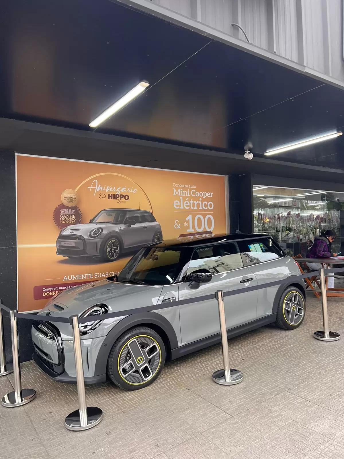 O Mini Cooper elétrico ano 2023, no valor aproximado de R$ 260 mil, será sorteado entre os clientes cadastrados no programa de relacionamento da rede (Clube Você Bem+) que efetuarem compras em uma das quatro lojas ou e-commerce do Hippo até o dia 30 de setembro. A cada R$ 100,00, o cliente recebe um número da sorte, sendo que a compra de três produtos das marcas indicadas como aceleradoras da promoção resulta na concessão de números da sorte em dobro e, na aquisição de cinco destes produtos, os números da sorte triplicam.