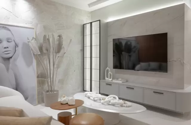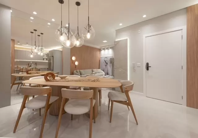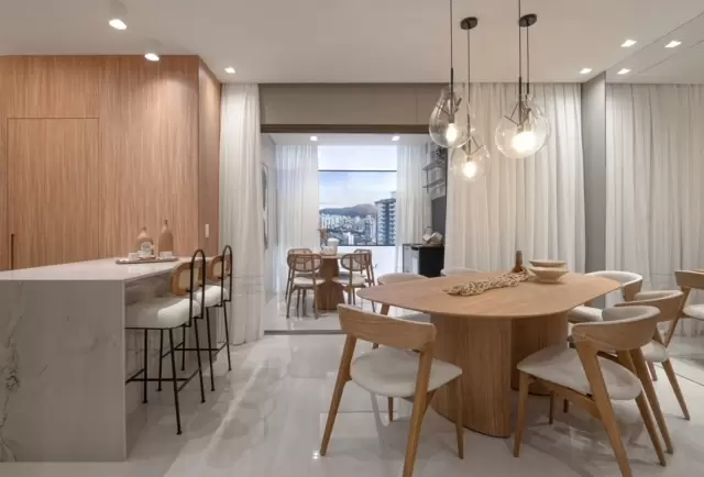 Ao entrar, você já é recebido por uma atmosfera de sofisticação e tranquilidade, com ambientes integrados e em harmonia. Os espaços foram meticulosamente projetados para oferecer um equilíbrio perfeito entre estilo e funcionalidade. Foram utilizados materiais nobres como a madeira, que traz calor e aconchego, as pedras naturais e muitas possibilidades em móveis soltos com design de qualidade e estilosos objetos de decoração. A iluminação quente cria vários cenários e realça os detalhes de design, cuidadosamente selecionados.