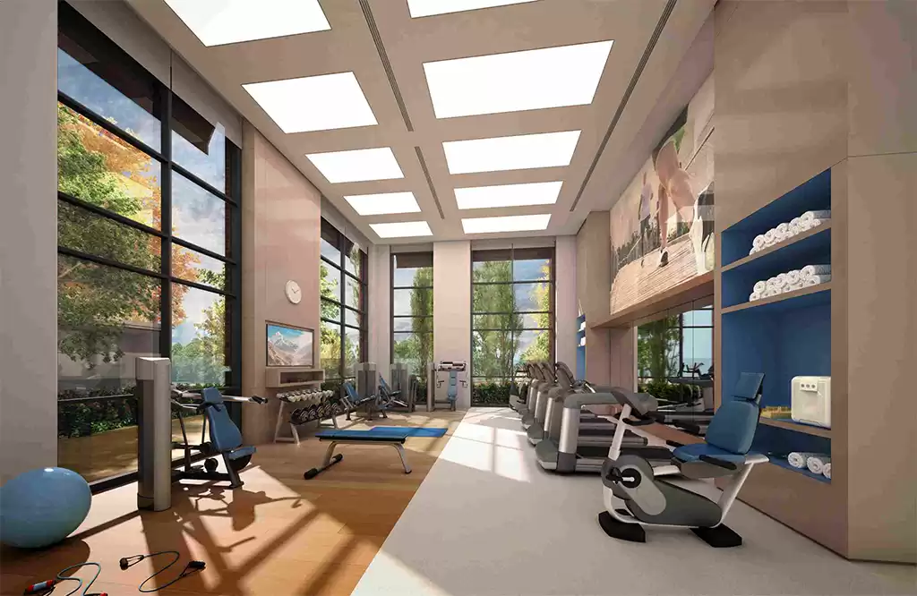 Para elevar a experiência residencial, o Queen Victoria possui áreas projetadas para o atendimento diferenciado aos moradores, como sala de massagem, academia, estúdio de pilates, espaço pet, bar gourmet e piscina para visitantes. “Assim, provemos a infraestrutura e personalizamos os ambientes para esses atendimentos, cujos profissionais (massagista e personal trainer, por exemplo) são contratados pelos condôminos”, conta Aline.