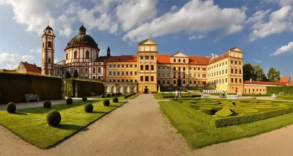 Em 1730, a primeira ópera tcheca "Sobre a fundação da cidade de Jaroměřice", de Antonín Míča, estreou lá. Durante o tour pelo palácio, você verá as salas de música, o salão de baile, o gabinete chinês ou a sala térrea com os banhos romanos próximos. A história musical do palácio continua até hoje com o Festival Internacional de Ópera Petr Dvorský organizado regularmente.