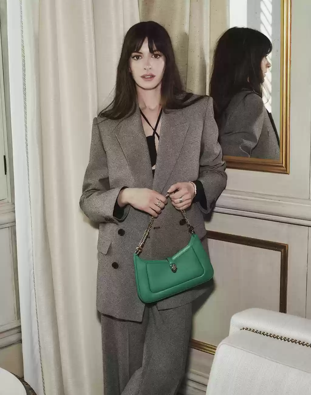 Batizada de KALEIDOSCOPIA, a Coleção de Artigos e Acessórios de Couro Outono-Inverno '23 evoca o fascinante jogo de reflexos gerados pela interação de cor e luz. Anne Hathaway, a premiada atriz com sua elegância contemporânea única – retratada pelas lentes do conceituado fotógrafo australiano Chris Colls – destaca uma coleção alegre e eclética em que mais uma vez as pedras vibrantes servem de fonte inesgotável de inspiração da Bulgari.
