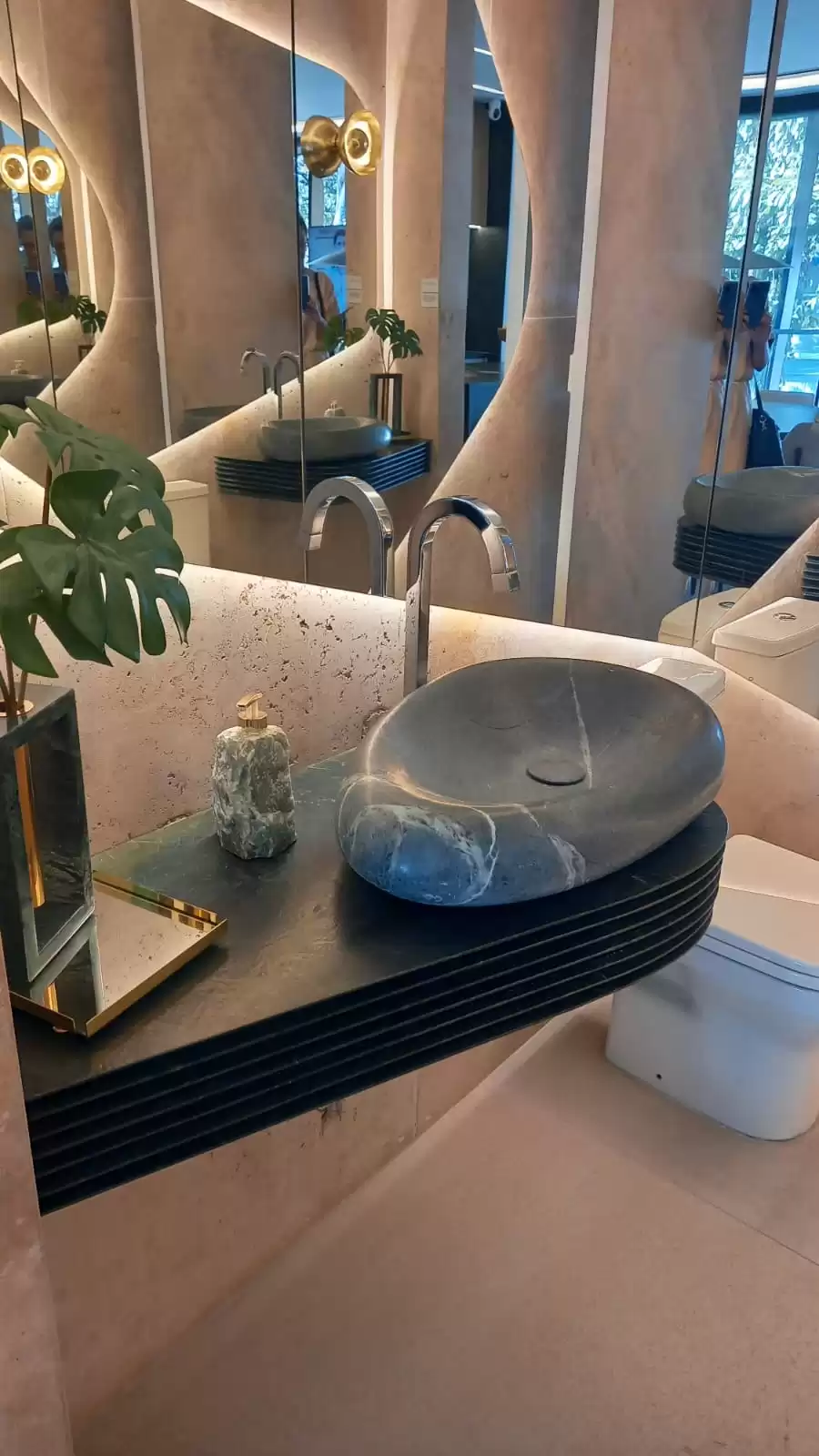 Para o arquiteto André Brandão, responsável pelo apartamento decorado do Sagô Marista, empreendimento da Séren Incorporadora, o lavabo tem a tônica geral da casa, que é mais suave e tem uma conexão com a natureza, mas que é tratado com um pouco mais de força, para que ele tenha personalidade. “Nós usamos materiais naturais como a pedra em várias tonalidades, pedra com menos polimento, mais natural e mais bruta para que tenhamos toque, textura, sombras, superfícies e dando nisso uma forma mais aconchegante”.