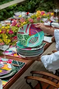“Nesta parceria com a Tok&Stok, a mesa posta que criamos conta com peças incríveis da coleção exclusiva da artista Julia Fontes para a marca e é uma amostra do que é possível fazer em um jantar no jardim de casa, ou em uma comemoração na varanda. São centenas de itens, desde produtos essenciais para o dia a dia das casas até aquelas peças que, sozinhas, dão uma nova vida aos espaços. Tudo muito bem pensado para trazer sinergia e requinte para os espaços externos”, afirma Lucila Zahran Turqueto, autora do canal Casa de Valentina.