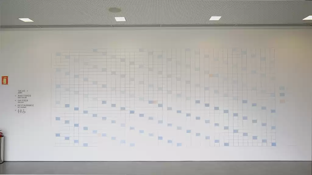 Fernanda desenhou 1440 retângulos para ilustrar cada minuto do dia, preenchendo alguns deles com diferentes tons para marcar os números de estupro e feminicídio. Os quadradinhos em laranja lembram que, a cada sete horas, uma mulher é morta em nosso país; enquanto os pintados em azul mostram que, a cada dez minutos, uma é estuprada - 53% delas são meninas menores de 13 anos, simbolizadas na intervenção em um tom mais claro, e as outras 47% são mulheres a partir de 13 anos, retratadas pelos blocos escuros.